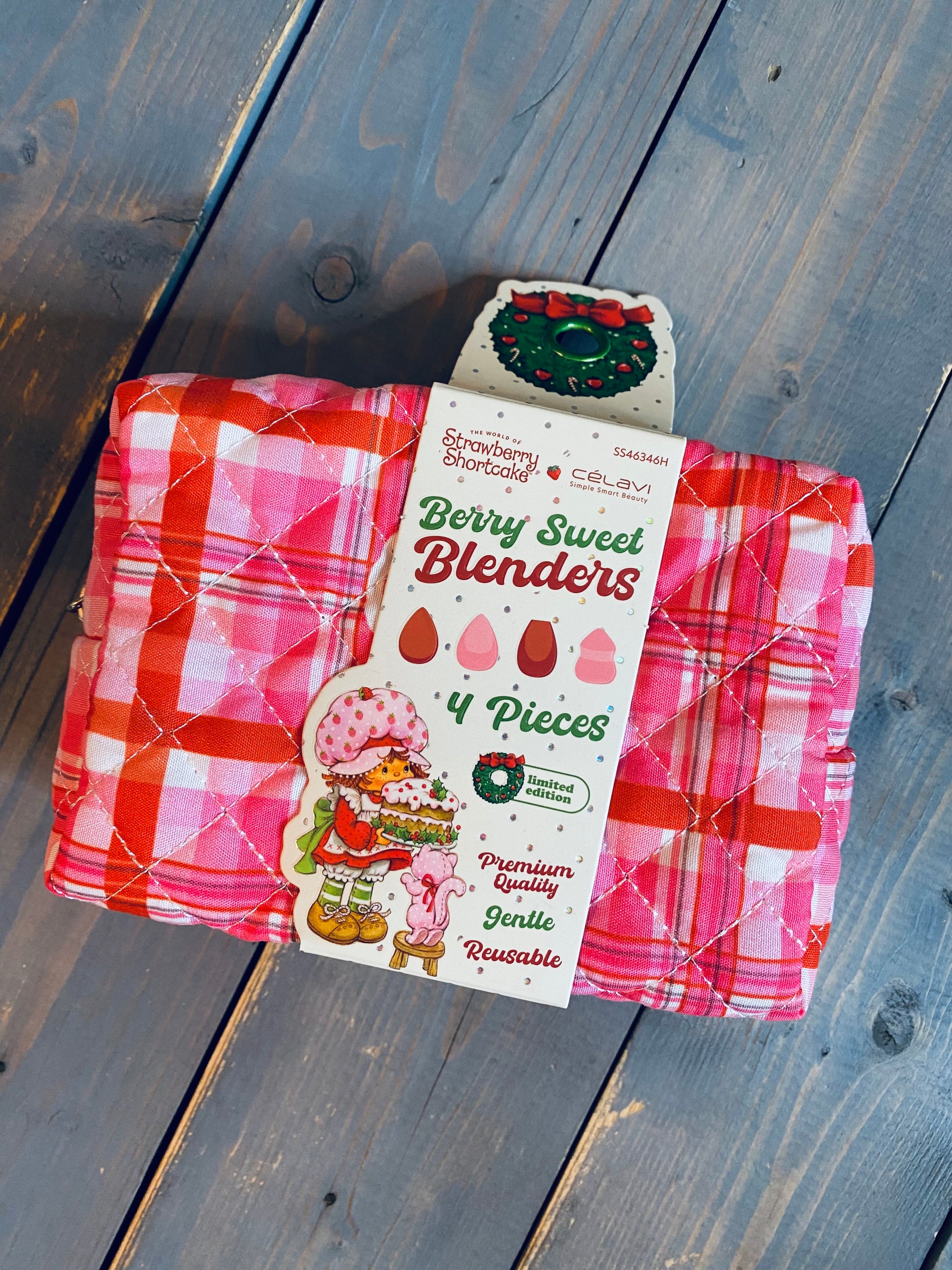 Strawberry short cake beauty blender set + makeup bag